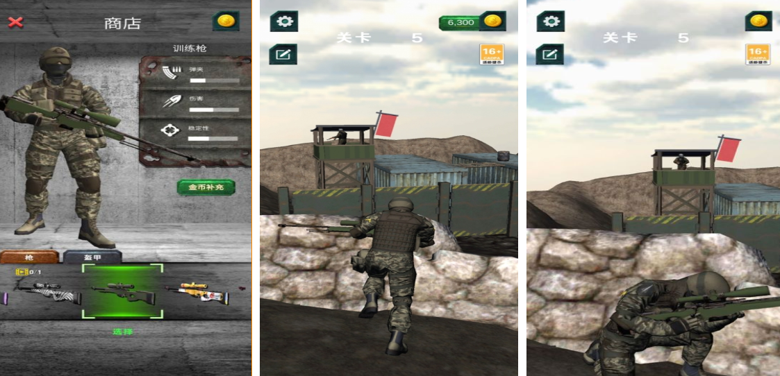 听着这款游戏的名字真的是很简单,其实就是使用狙击枪去杀敌人,游戏的难度并不是很高,种种的关卡都值得你去挑战。,玩家可以利用敌人视野的盲区进行狙杀,在紧张刺激的追赶过程中,让你感受到什么是真正的射击体验。想要成为一个好的射击手,除了要有敏捷战术之外,还要有精准的技法,那么值得挑战一下这款游戏哦。