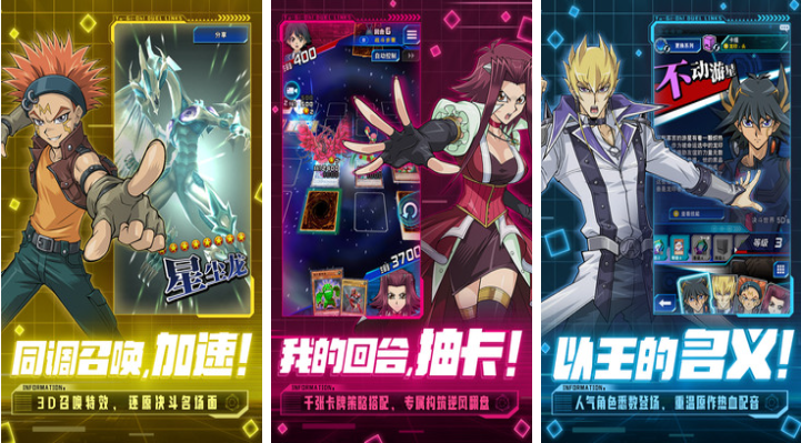 本作是款分辨率非常高的硬核3D卡牌对战游戏,玩家需要使用自己的卡组利用各种战术与对手交战,超级高清的画质与震撼的召唤特效让人眼前一亮,3D的引擎技术和日式风格的配音也让人难以忘怀,刻画深刻的战斗系统和考验智商的竞技方式让玩家越玩越上瘾,各位游戏王动画片的粉丝快下载游戏王MasterDuel玩玩吧。