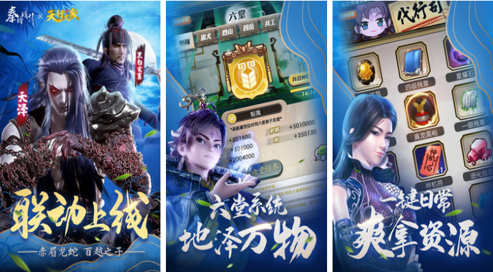 这款具有3D画面的漫改卡牌游戏质量也非常高,质量不俗的画面配合纯国语的配音效果让人乐在其中,日常任务和多人联机的副本等玩法应有尽有,超多的卡牌和丰富的游戏道具让玩家们大开眼界,尊重秦时明月动漫的剧情故事也吸引了大量的粉丝,非常细腻的人设和美工技术让游戏的可玩性更胜一筹。