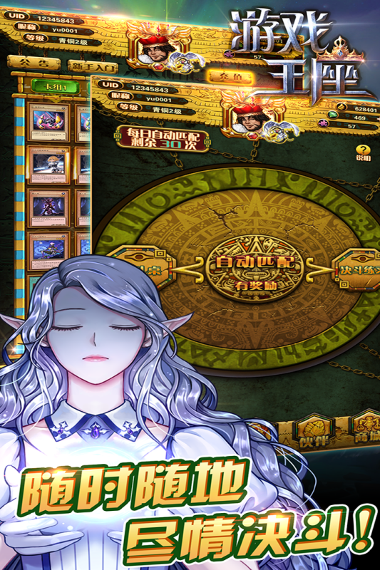 同样这也是一款关于卡片的手游,这款游戏中还有一些战斗的元素,大家可以体验到王者与王者之间的对决,而且进行这款游戏的时候,玩家需要具有高度的进行思考,这款游戏能够锻炼各位玩家的逻辑思维能力。游戏中有多种卡片,比如说怪兽卡或者是魔法卡,大家要掌握这些卡片的属性,并且将这些卡片给搭配在一起。