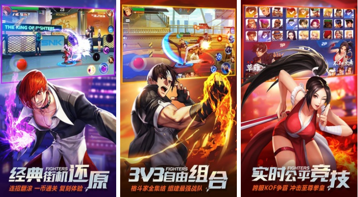 拳皇命运是款基于街机拳皇打造的硬核3D动作类游戏,本作为了适配移动端简化了不少战斗方面的操作,保留了最基础的搓招战斗方式,双摇杆的操作方式和超爽的打击感让游戏的趣味性大大提升,闪避、破招以及必杀技等拳皇元素应有尽有,舒适的操作手感和炸裂的大招特效让游戏的刺激性更胜一筹,你也下载这款支持3V3的拳皇动作游戏尝试吧。