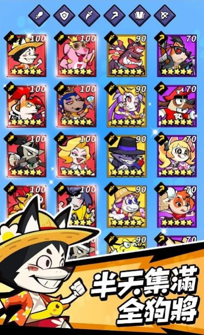 游戏中,大家需要选择登场不同的狗将,这些狗将获取的难度非常的低,通过游戏中的抽奖和碎片合成,就可以获得了!在自动闯关的是时候,在最后一个关卡还会遇到防御塔,需要大家不断的去使用获得的资金来强化这些狗将!