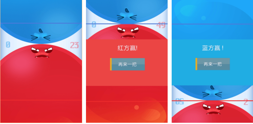 双人点击是款可以单机运行的双人挑战类游戏,比拼手速的操作系统和简洁的画面UI让玩家连连赞美,两个玩家需要快速点击屏幕让自己在地图上占据优势,手速最快的玩家才有几率获得胜利。简单干脆的玩法和鲜艳的画风让人回味无穷,悦耳的音效和轻松的游戏氛围让游戏不再枯燥,手速很快的朋友挑战一下这款双人对决游戏吧。