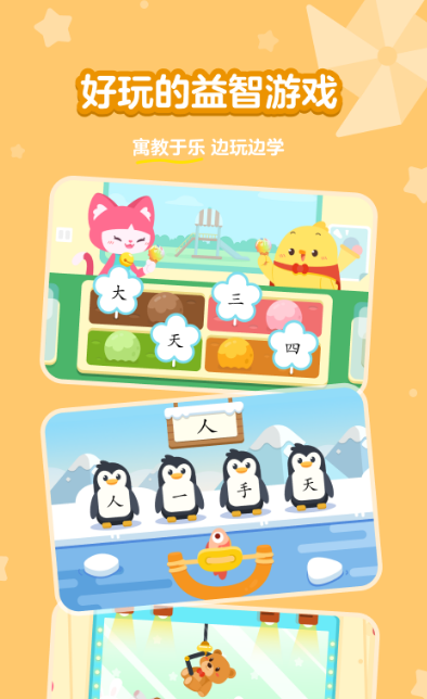 这款游戏非常好玩,对于小朋友来说,可以当做一个汉字启蒙的学习游戏,并且也受到了许多小朋友以及家长的喜欢。因为这款游戏当中拥有着独特的教学方式,各位玩家在有趣的体验当中,还能够对课程拥有着更为深刻的印象。不管是用于学前教育,还是用于已经上了学的小朋友都非常合适,可以做到边学边玩。