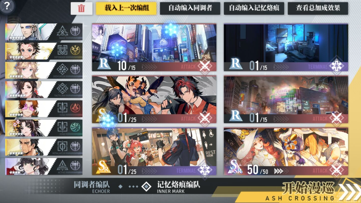 而【烙痕】可以理解为装备。我们在进行主线任务和在卡尺抽卡时会获得记忆烙痕。我们需要食用烙痕才能进入到回廊漫巡当中,可以说烙痕就是刷去战术刻印的必要基础。而刻印的强度,是和角色们的突破等级,技能等级等等方面是息息相关的。在进入回廊漫巡之前,我们需要尽可能的将自己的角色的练度升级到当前的最高,这样我们的战力就会更高,从而刷出更加强力的战术刻印。