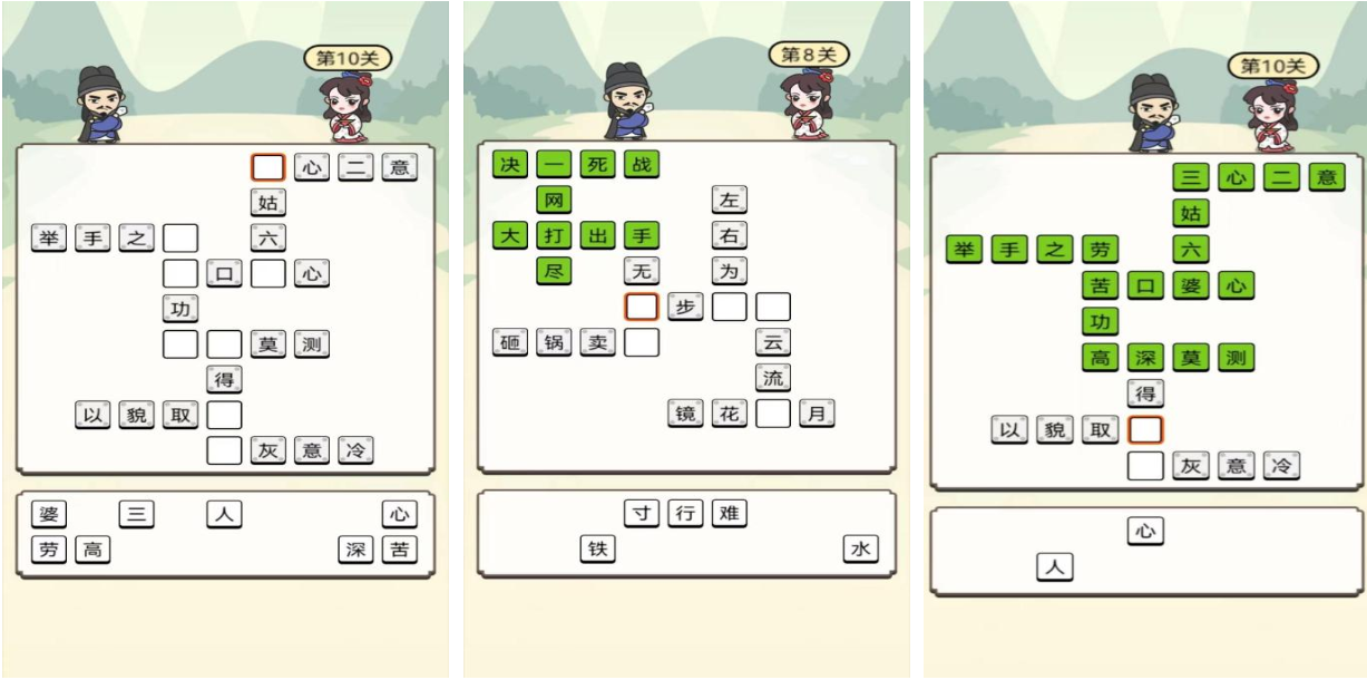 组词大师是款妙趣横生的单机文字类益智手游,本作将传统的汉字、成语以及歇后语等文化融入其中,边玩边学习汉字知识的方式让玩家乐在其中,休闲性十足的游戏内容和丰富的关卡让游戏更具趣味性,张弛有度的画风与古典的配乐效果让人难以忘怀,优异的视觉效果和烧脑有趣的玩法让这款佳作更具魅力。