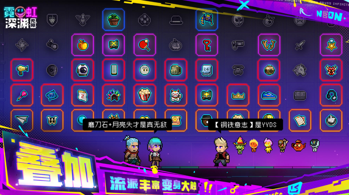 霓虹深渊是款带有明显赛博朋克风格的横版像素闯关游戏,丰富的流派和炸裂的粒子特效让游戏更具可玩性,边杀怪边掉落物资的感觉十分爽快,优异的视听反馈和丝滑的操作系统让本作脱颖而出,超多的关卡和细节满满的地图让玩家乐在其中,震撼的打击音效和物理反馈提高了游戏的刺激性,相信霓虹深渊这款超爽的动作冒险游戏会让你满意。