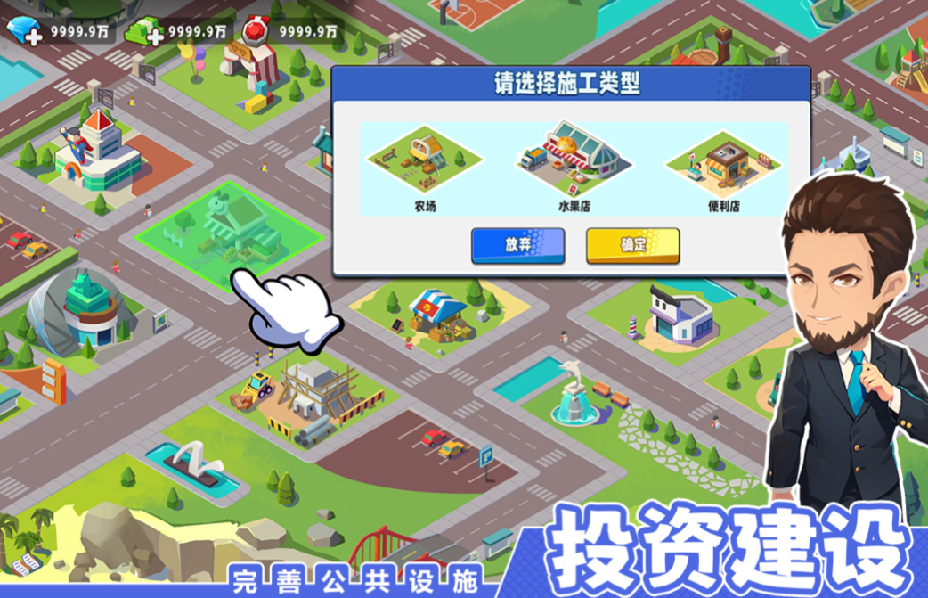 本作是款具有卡通风格的上帝视角自由建造游戏,将角色扮演和模拟经营相融合的玩法让玩家耳目一新,你将化身亿万富豪在地图上打造一座属于自己的城市,电影院、杂货店等等建筑模型让人大开眼界,独特的商业经营模式和简单的建造玩法也是本作的魅力所在,你也下载这款硬派建造游戏体验当亿万富翁的感觉吧。