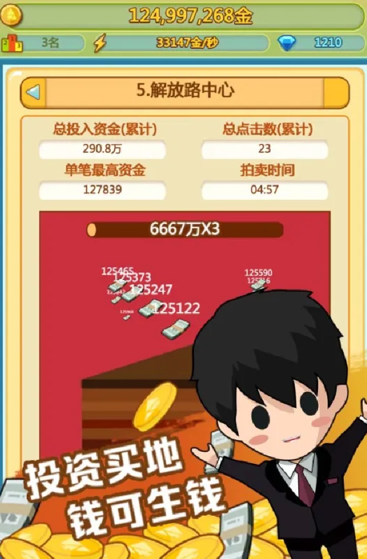 这是一部可以和现实接轨的游戏,很多人在玩这款游戏的时候,其实都能够和游戏中的主角共情,因为游戏中的主角也是一步步成功起来的。只不过是他比我们在现实生活中更加有一些,毕竟这是游戏。大家在游戏中需要去操控这个主角,去实现自己成为首富的梦想,他会去做很多的工作,然后赚到更多的金币。
