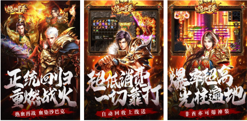 热血寻秦是款质量非常硬核的半挂机传奇类MMO游戏,挂机刷怪以及随机掉装等游戏机制应有尽有,超快的攻速让战斗的快感更胜一筹,极高的爆率足以让玩家在短时间内得到超多装备,丰富有搞头的剧情内容和炸裂的视觉特效让人爱不释手,刀刀暴击的打击效果与经典怀旧的美术风格也是本作的魅力所在。
