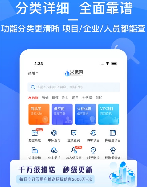 作为全范围的手机智能化项目管理管家,大家在这里能通过大数据来为自己进行服务,像数据的分析和招标信息的了解等,当然还有推送消息和智能化分类带给大家,让用户能进行规范化的管理。
