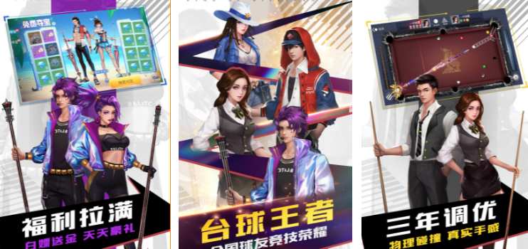 《超级台球大师》随时随地都可以和其他的玩家进行比拼,已经还原了现实世界里面的中式八球和斯诺克的玩法,在操作的期间并不是很复杂。炫酷的动画场景以及特效,还有真实的物理参数,真是让更多的玩家们喜爱,想要在这里面成功肯定要掌握一些台球的规则,在打台球的期间还要掌握更好的技巧,相信如果你对台球有更了解的知识,那么肯定能够得到更不错的成绩。
