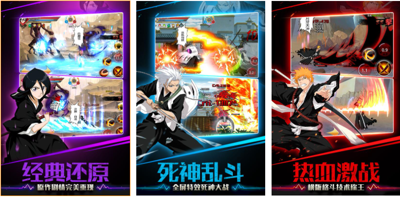 千年血战是款内容十分硬核的死神漫改横版卷轴式游戏,还原度极高的剧情和经典还原的战斗招式让人叹为观止,裂屏的特效和优秀的战斗手感也是本作的神来之笔,精致的日式美术风格和俊美的角色形象提高了游戏的辨识度,友哈巴赫、十刃等死神漫画里的经典反派也会在游戏中全部登场哦。
