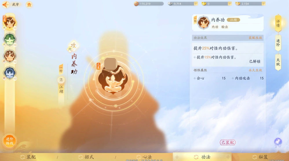 如果玩家们加入【桃花岛】门派可以学习治疗技能,想走内功辅助路线的必选门派,武器以轻剑为主、重剑外功输出为辅,毕竟没有战斗力也不行。其实内功辅助的第二条路线是加入全真教,只不过将破盾实力提升至20%,掌握的技能不一样。