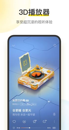 非常知名的一款手机听歌软件,曲库还是比较庞大的,囊括了海内外的很多歌手和乐团作品,这款平台的特色就是给我们提供了出彩的3D播放功能,可以扩大立体声效,让我们真正身临其中。