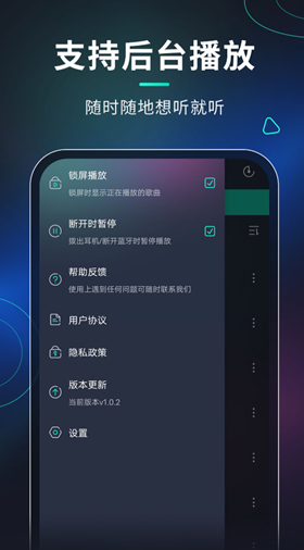 大家可以使用在线曲库进行挑选进行播放,而且还可以为我们扫描手机上的本地音乐,支持的格式还是比较多的,更是能够非常方便地创建播放列表来享受自己喜欢的作品。这款软件支持后台播放,息屏后也可以正常听歌哦!