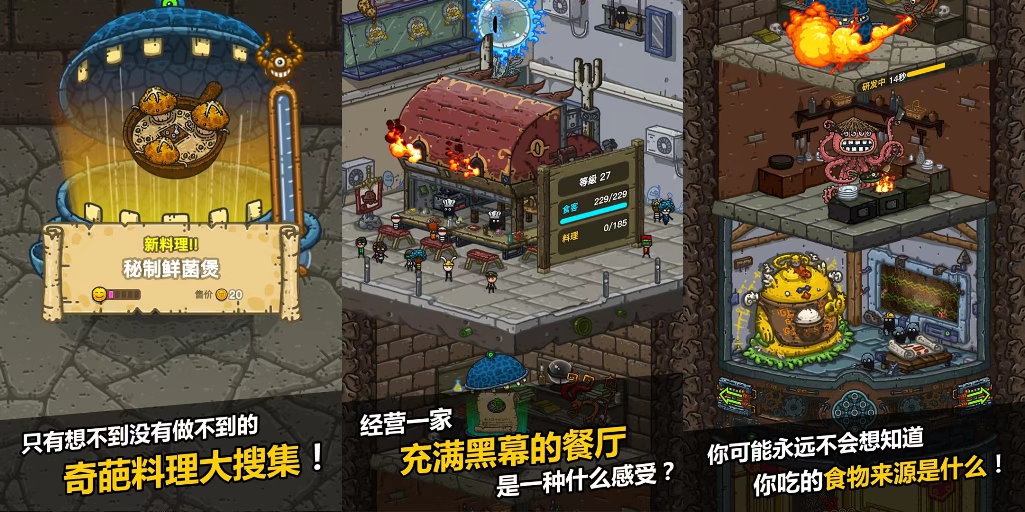 喜欢料理的玩家一定不能错过这款手游,在这里,玩家不仅可以体验到店铺经营的快乐,还可以感受更为新奇的游戏风格,各种搞怪、趣味的怪兽等待玩家的解锁,并且,在这里,玩家可以制造出各种意想不到的奇怪料理,从未听说过的玉米蝇、西红柿蛙等等,在这里都是美食!制造出的食材越是黑暗料理,越是受欢迎。游戏过程可以带给玩家全新的游戏体验和感受,想要挑战的玩家赶快下载游戏吧,看看谁才是最后的黑暗料理王!