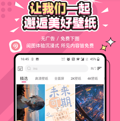 充满美学设计的平台,纯粹无广告,其他壁纸平台还停留在看广告或者付费的方式获取壁纸,该平台就已经将这样的模式完全取代,虽然免费但类目很齐全。