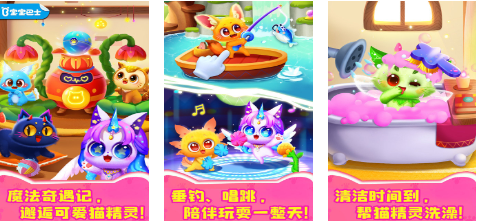 欢迎孩子们来到充满魔法的奇幻世界之中,整个游玩界面都是吸引儿童的卡通画风,并且还会有好听的儿歌一直播放,在这里会遇到各种个性独特的猫咪精灵一起去探索世界。每一位猫咪拥有的魔法都不相同,你需要负责猫咪每天的三餐和清洁,每天都会有不同的任务你要与猫咪一起完成,还有唱歌跳舞和钓鱼等多种休闲玩法,上手难度不高还能了解猫咪的属性和生活方式。