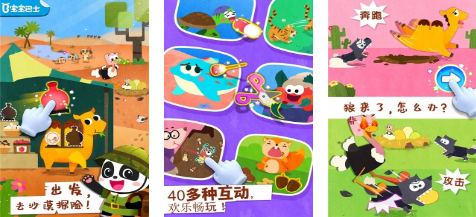 欢迎孩子们来到可爱的动物世界之中,这里提供了品类齐全的动物,孩子们将会根据系统要求的任务去一步步操作,只要完成任务就能解锁其他的玩法,并且还能认识到各种动物的特性和外貌。此外,你还能与喜欢的小动物进行互动和模仿动物的一些行为,也能保护一些劣势的动物不被狼吃掉。