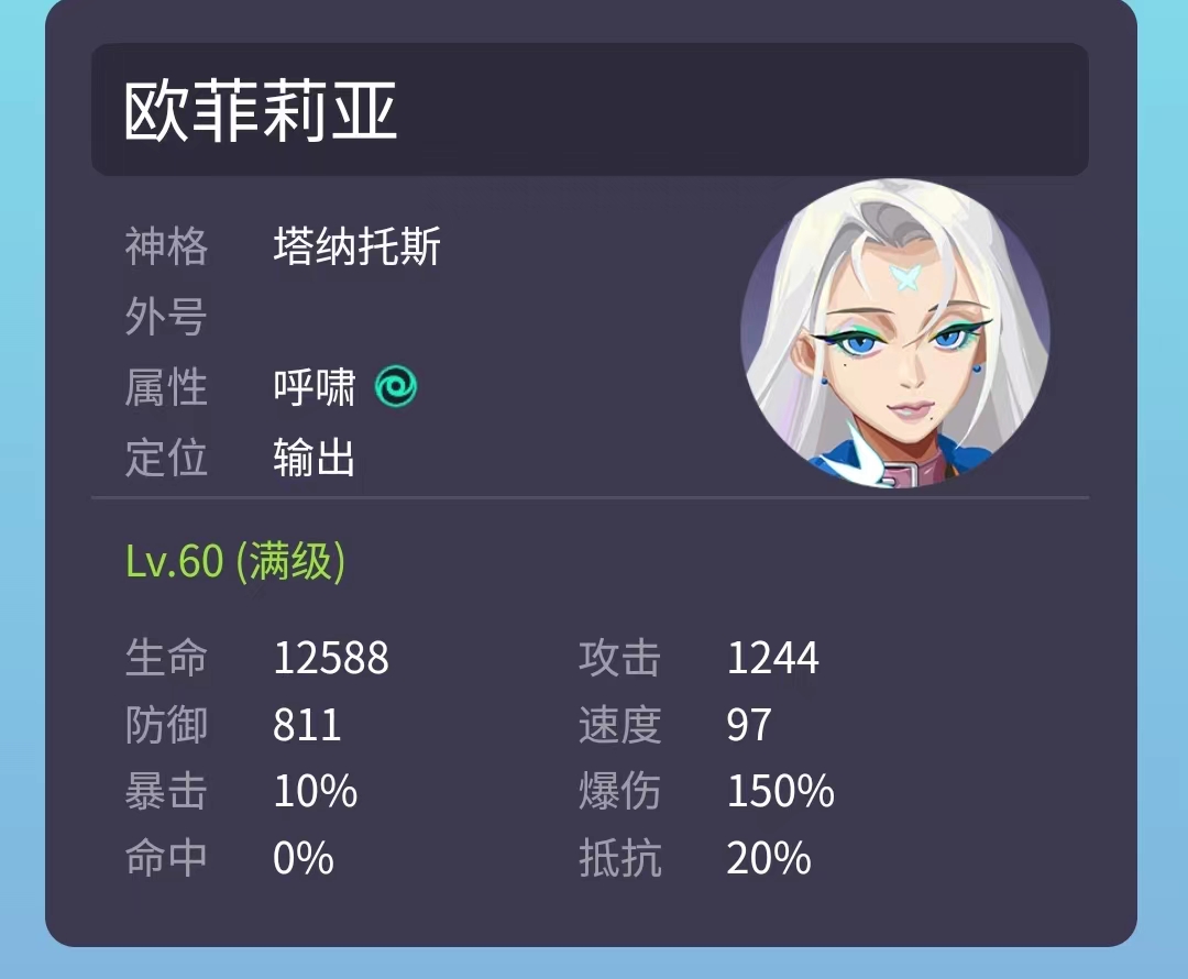 在游戏的基本设定中,欧菲是一位呼啸属性的输出角色,该角色是一位五星级的角色,在游戏中的适配度非常高,很容易在一些常见的队伍中看到欧菲的身影。作为一位输出型的选手,欧菲莉亚的角色特点是非常擅长于用叠加负面效果的攻击方式来对目标造成巨大的伤害。