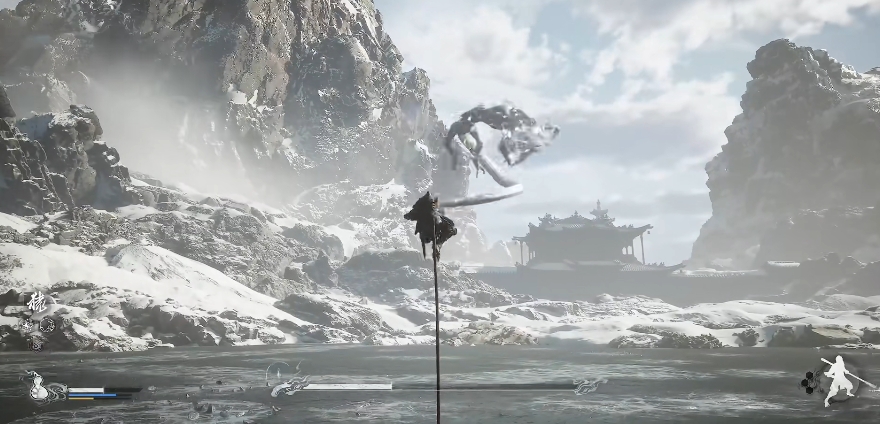 踩高跷:它本身属于玩家棍法的一个变式,也算是一种比较特殊的技能,使用后主角会将棍棒变长,之后整个人爬到棍子的顶端,这个技能使用得当的话可以躲避敌人位于地面的攻击,同时使用后也可以让你的视野变得更加宽阔,面对一些比较高大的敌人和处于浮空状态的敌人时都可以起到一个更好的观察作用。