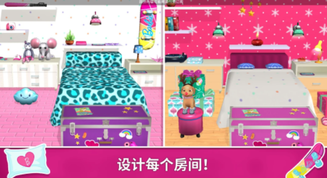 本作是款专门给女孩子打造的休闲类过家家手游,将休闲益智的玩法和装扮元素进行了完美结合,玩家可以为温馨的小家进行装修设计,亦可以为可爱的芭比角色精心打造一番,各种类型的装扮道具让本作显得趣味性十足,极具真实性的3D画面和交互式玩法也让游戏显得十分硬核。