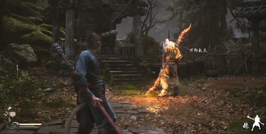 头目级:这种就是一个关卡中的小boss,它们通常会出现在关卡的前半部分,一般形象表现为某只小怪的放大版,或者加强版,出场的时候没有专属过场,偶尔会有几句对白,同时实力也比较一般,但战斗的时候还是会有与一般小怪不同的特征,刀狼教头就是一个很好的例子,它同样是一个狼妖,但却修行佛法,同时与玩家见面的时候还能侃上几句,之后与玩家战斗时更是拿出了它手中带有烈火的长刀,进行火光四射的挥砍。