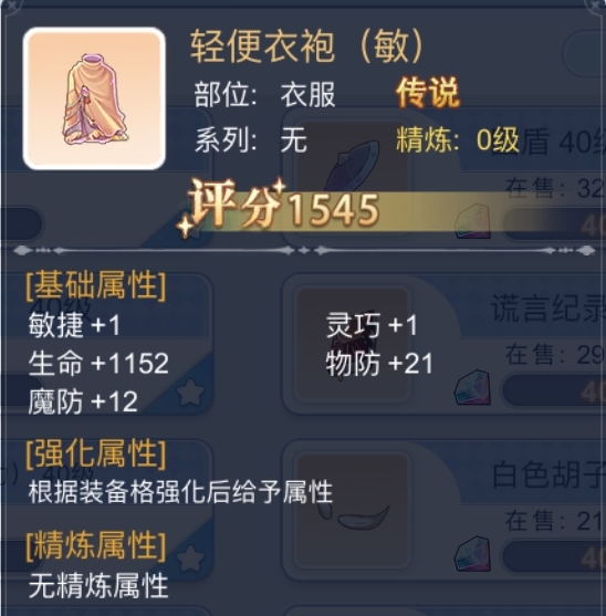 头饰三件套分别为安全帽(上)、薄纱披风(中)和白色胡子(下),衣服为仅限弓箭手和盗贼职业的轻便衣袍(敏),鞋子为战士长靴。倘若玩家没有虫戒,可在两个饰品位都装上银戒指,若是有虫戒可用一虫戒一银戒指的搭配,或是直接上双虫戒,但记得要给虫戒进阶。