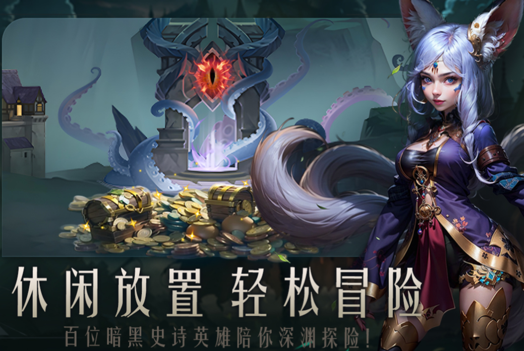本作是款休闲性十足的卡牌地牢冒险游戏,玩家的任务是招募一支精锐小队在地牢中慢慢冒险,暗黑系的背景与超爽的战斗快感让玩家难以忘怀,休闲放置的战斗系统让冒险的过程更加轻松,海量的福利和随机性很强的游戏内容也是本作的点睛之笔,丰厚的挂机收益以及极快的升级速度让人乐在其中,上百位造型各异的暗黑世界英雄供玩家随意挑选。