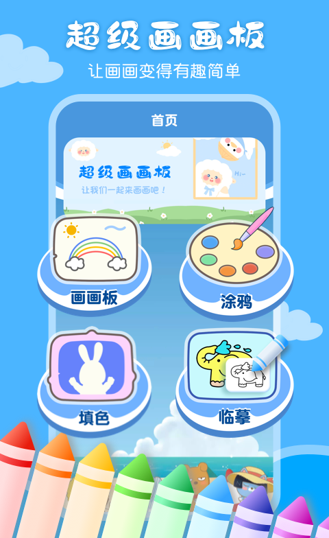 一款适合小孩子们画画的APP,发挥想象力自由画画和创作,提供了很多的画画素材,给图片填色提高色彩感知力,汉字和字母的临摹也支持,画画涂鸦是大家学习基础必备的工具。