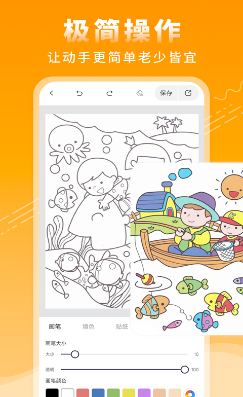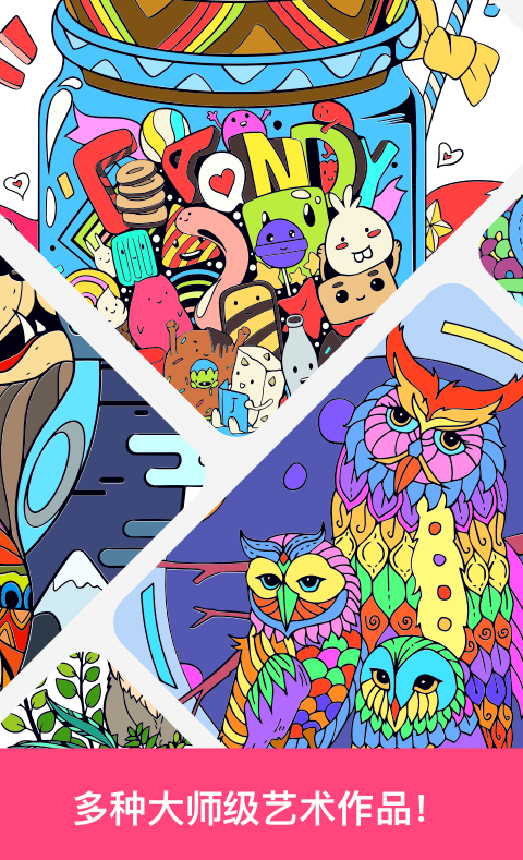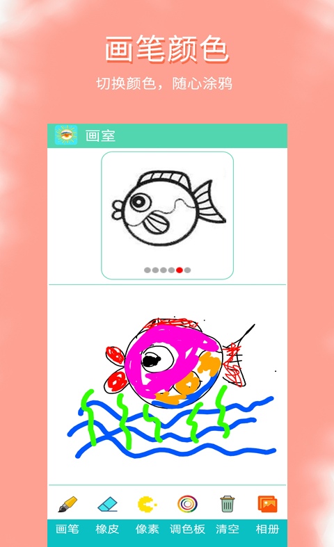 益智绘画涂鸦填色软件,有助于培养孩子们的思维和感知能力,采用独特的涂色技术,在图案上填色会拥有不一样的图画世界,支持无限制的撤销重复操作。