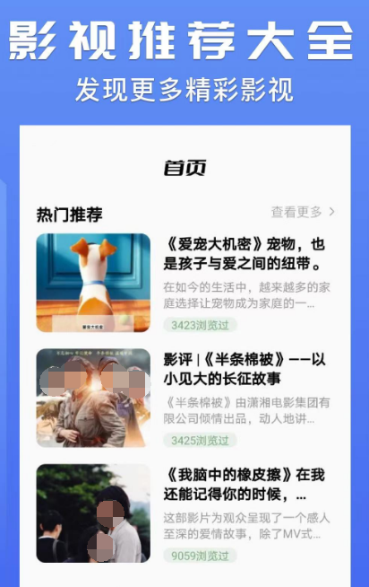 观看各种不同风格的电影可选择这款软件,让你第一时间了解到当下的热播剧剧情,同时还包括各种不同风格的影片、图文解读,可以深入的了解影视作品的内涵,汇聚了知名大师作品的电影解读,可快速了解电影背后创作的魅力。