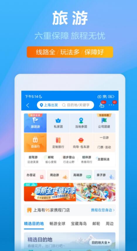 软件中提供了多种多样的旅游服务,你可以选择参加对应的旅行团,跟着导游一起去参观景点,也能选择自由行,不受限制地去旅行,还能够在线订购景区的门票,或者提前规划好自己的行程,购买相应的车票。