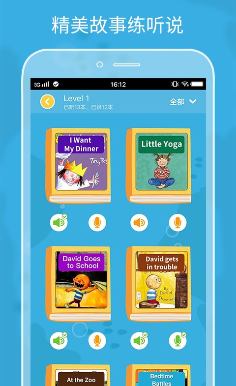 有声儿童绘本故事,让有趣的绘本故事陪伴孩子的成长,解决孩子不爱阅读和阅读量不够的问题,每周精读四本书,每天20分钟,循序渐进提升阅读能力和兴趣。