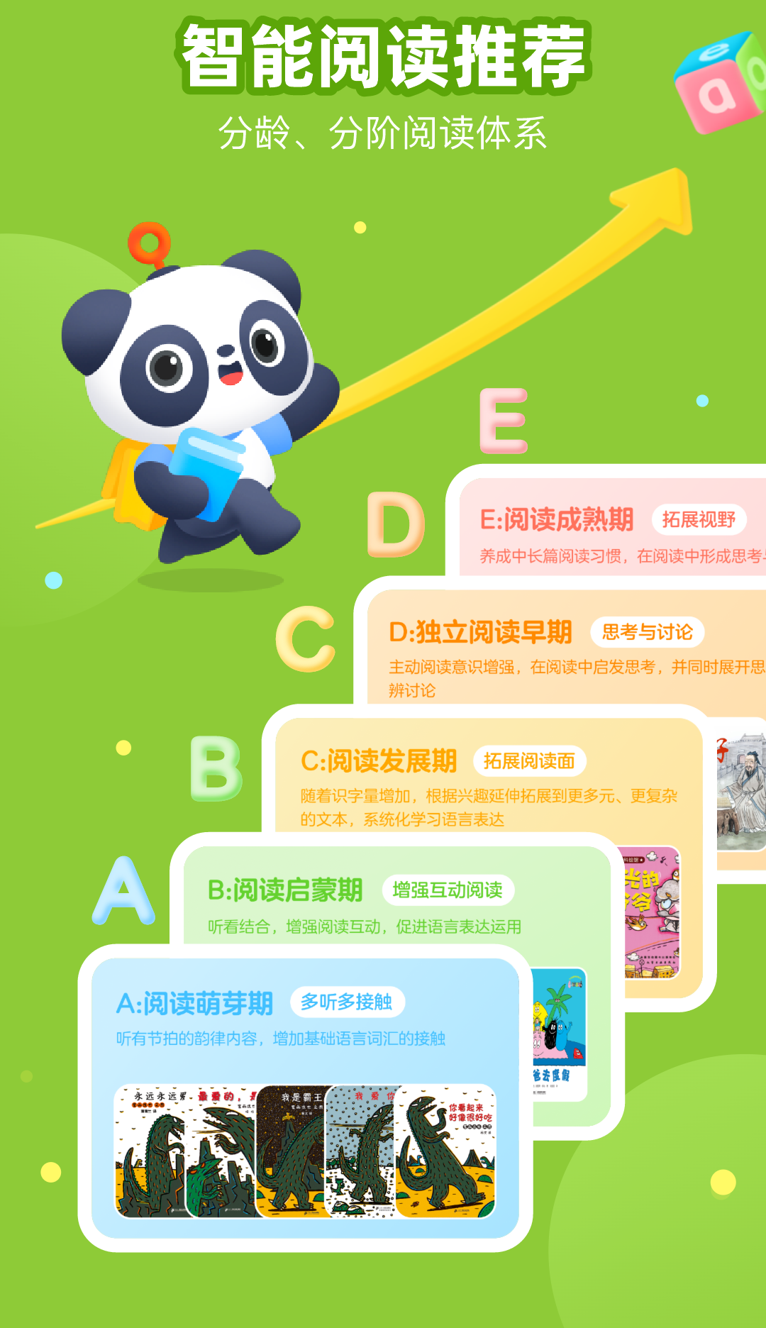 儿童英语绘本读物,从小接触能够更好的锻炼他们的口语能力和听力能力,专业的外教老师在线配音,分级阅读满足各个阶段孩子成长的需求。