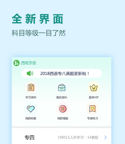 该刷题软件主要是针对小语种考试的,拥有着全新的界面,各种科目等级一目了然的能够显示出来,在刷题的过程当中,如果用户有一些错题的话,该软件还提供错题统计,能分析用户错误之处。包括在刷题的时候还有历年真题等等内容,给大家精心整理相关的答案解析内容。其中包括日语、韩语、法语、英语、西班牙语等科目,以及导游资格证、证券从业资格证书等方面的考试题目。