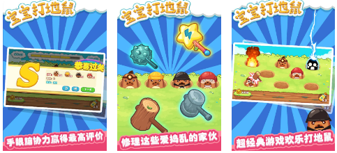 要求速度和眼力的打地鼠游戏也能支持多人游玩啦,如果想要陪同孩子去玩一些能够提高智力的手游,就能来这里挑战,长期一起玩耍还能带来温馨的家庭氛围。家长可以与孩子开启联机竞技模式,通过击打地鼠的数量来获得分数,系统时间结束分数最高的人就是胜利者,但是在敲打的过程中有时会出现炸弹,如果碰到炸弹就会扣掉分数,所以一定要注意躲避。