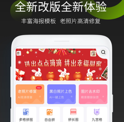 智能拼图相片修复各种p图功能一应俱全海量模板,比如美食风景、宠物节日和时尚感,众多模板任由选择,支持多种创意图形截图。