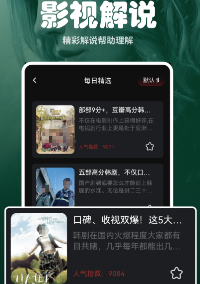 作为专注于发现和分享电影的应用程序,根据喜好推荐出适合的电影,提供丰富的精彩解说,帮你更好理解,可随时了解有关于电影的相关信息。
