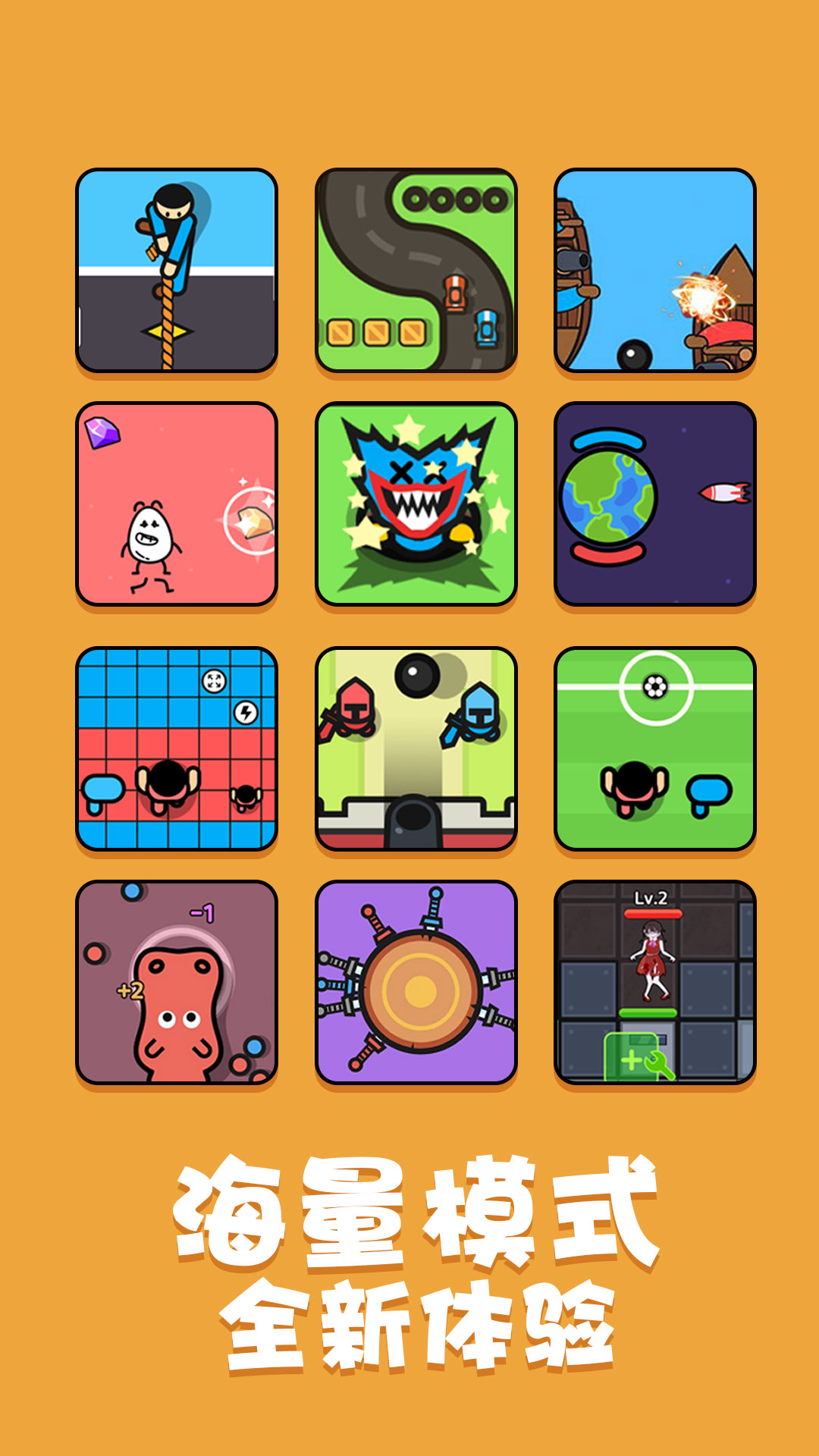 这是一款不需要网络就能进行双人在线竞技的神奇游戏,这款游戏包括了将近一百个小游戏,每个游戏的图标都会被分成两个部分,可以让两个玩家一起玩。这是一款非常考验玩家反应能力的小游戏。卡通的画面和欢乐的气氛吸引了玩家们的注意力,分屏战斗的机制是公平和持久的,喜欢分屏的朋友们可以下载这款不错的游戏。