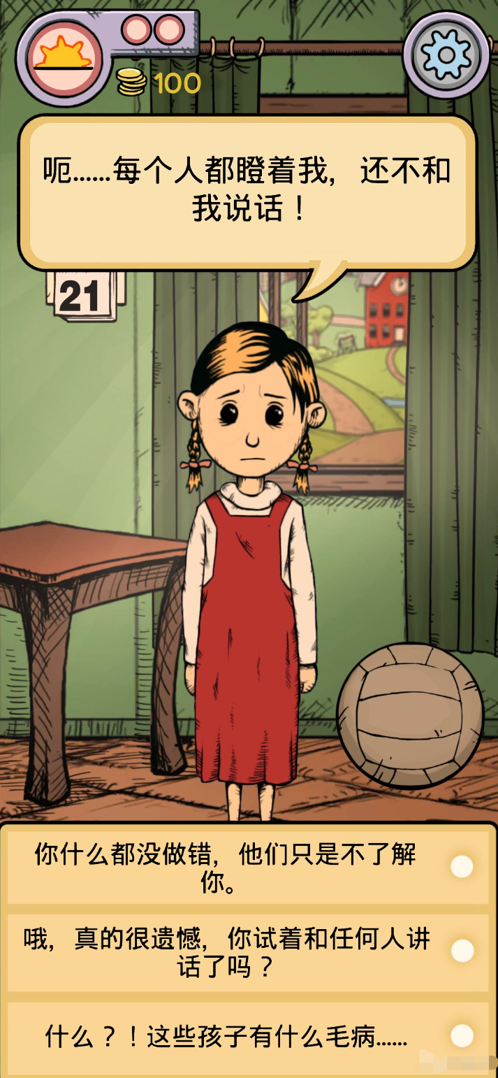 但在被欺负的问题上如何选择对话都不是一蹴而就的,在选择之后查看下愉悦度再调整即可,只需要保持你的孩子的饱食、清洁和愉悦程度都在80%以上,不要让他们饿了、脏了或者难过了。就能触发好结局。