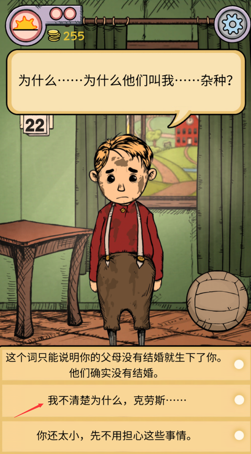 在选项上主要围绕战争是残酷的,人性是复杂的,但是世界上还是有爱和美好的即可。需要让他们勇敢地面对自己的情感,不要逃避或者压抑。游戏的结局取决于你的选择和行动,有四种不同的结局。