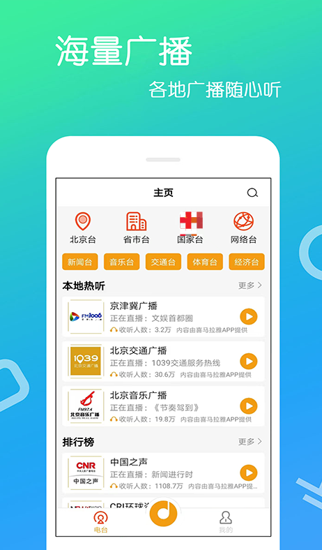 这是一款可视化的广播APP,通过这款软件大家可以看到自己喜欢的频道和主播,同步电台主持人的动作,此外这款软件中还收录了国内主流电台的节目,无论是音乐、经济还是历史等都可以一网打尽,非常适合开出租的朋友们下载使用。