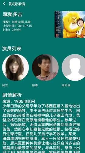 对影视的信息展示还是比较齐全的,剧集方面会显示具体的更新集数,电影则会显示时长以及上映的时间。可以直接看到完整演职员表并且点击头像查看历史作品进行跳转播放。