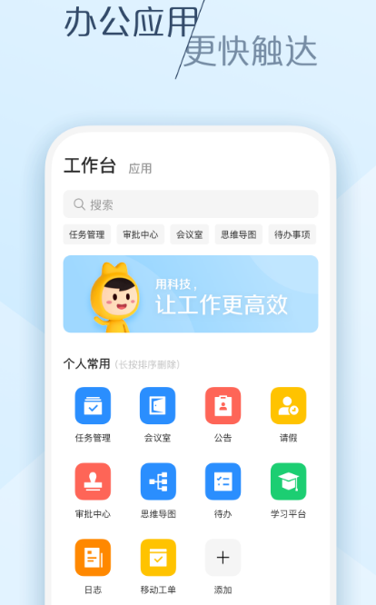 办公时如果想要进行企业管理或者是办公协同,这个软件都是非常不错的,集多种功能为一体,其中包括领域信息化解决方案,智能硬件连接集成等。通过将企业中的人物场景等连接起来,可将企业基于端的业务形成移动端转型,为企业迈进全新的智能工作时代。