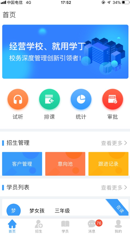 它是让校长与学校中高层管理的一款软件,具备很多技术手段以及业务功能,包括数据分析、办公协同、流程量化、管理闭环等,希望能真正的做到技术赋予管理,让每一个从事教育工作者都能提高工作效率。聚焦学校发展以及教学的质量,如果自己是从事教育管理方面的人群,都可通过软件来帮助自己提升办公的效率。