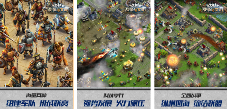 《战争与文明》也是一款50v50的战略类型游戏,整体的画风真的是很现实,就像在真实的战斗场景一样。游戏中可以参战的英雄种类很多,比如:拿破仑、项羽等。整体的游戏节奏很快,除了具有了一定的策略性,还模拟了经营类型的玩法,可以真实的去参与经营,算是一个多元化的游戏,如果你喜欢,那么赶快下载吧。