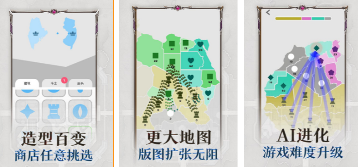 《帝国扩张》有百变的造型、大量的地图能满足不同玩家的需求,也是很好的一款策略类型游戏,可以通过农民生产粮食,让经济得到更好的发展,在强大自己国家之后和其他的国家去战争,当然游戏也是有很多的选择,比如:单人、双人、三人都是可以进行战斗的,更主要的是还有录像和观战的功能,是强烈推荐的一款游戏呢。