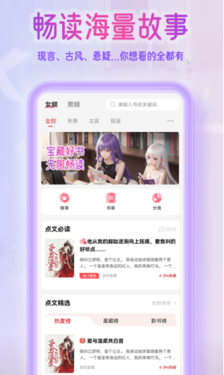 想要阅读各种不同类型的小说,一定要选择这款软件,该软件上的小说都是知名大咖创作,迄今为止已经拥有500万用户,上百万原创作者带您领略小说创作的魅力,同时还有热播剧的原著,该软件已经全面升级,为用户打造非常贴心的专属看书服务。